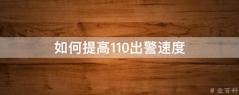 如何提高110出警速度