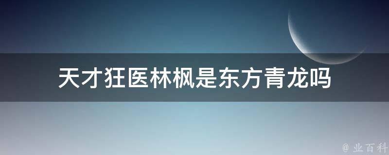 天才狂医林枫不是东方青龙,只是一个医术超群的医生。《天才狂医》是一部完结的都市类轻小说,作者是陆尘。内容简介:林枫,出身古老的中医世家。秉承祖训下山历练,为了习练祖上医术而躲避上京三大美女的逼婚,他一路躲藏,最终在比较落后的周山省西前市第一人民医院安身立命。