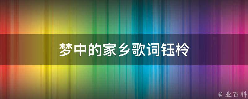 最佳答案钰柃演唱的梦中的家乡歌词有:梦里又回到那个小村庄,我光着脚走在小路上,路边的大树向我招招手,它还记得我童年模样,梦醒我揉揉朦胧的双眼,仿佛下一刻你就出现,早已忘了是哪一天,我背上行囊背影孤单,我梦中的家乡,让我魂萦梦牵的地方,有过多少欢乐和向往,是我童年记忆的天堂,我梦中的家...