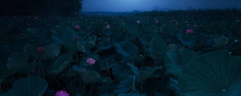 月下水中的荷花像一个亭亭玉立的少女一样,静静地站在水中,随风舞蹈。等到风停雨住,回归安静的时候,她又变成了娇羞的少女,轻轻地低下了头,静静地看着自己的倒影。实际上,在月光下观察荷花是非常美丽的,荷花的白色花瓣反射银色的光芒,看起来就像月亮本身一般,而荷叶绿色的茎干与银白的月光相映成趣,构成了一幅美丽的水墨画。
