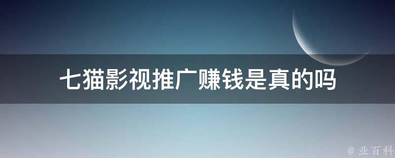 七猫影视推广赚钱是真的吗