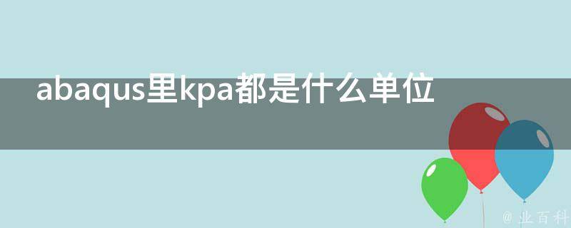 在Abaqus中,kpa是千帕的单位。在Abaqus中,常用的压强单位还包括兆帕(MPa)、千帕(kPa)和巴(bar)等。Abaqus是一款功能强大的工程模拟的有限元软件,主要用于工程领域,用于模拟和分析复杂结构的行为。