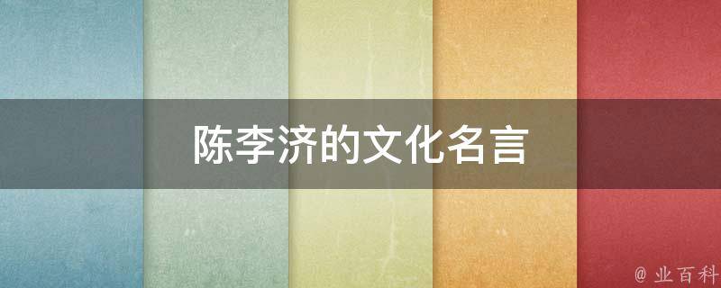 最佳答案陈李济的文化名言:存心济世讲诚心、讲诚信,坚持取信于民。陈李济是全国中药行业著名的老字号。创建于公元1600年(明朝万历27年),迄今已逾四百年之久。在清代,同治皇帝因服其追风苏合丸,药到病除,称其神效。由此,以杏和堂为商号的广东陈李济,更名躁大江南北。光绪年间,帝师翁同和又为之题...