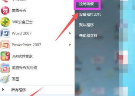 打开电脑,点击电脑左下角的开始菜单,在弹出的菜单选项中选择“控制面板”。