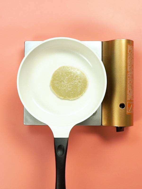 6、锅中倒入食用油,适量刷匀,放入面糊,小火煎至两面金黄即可。