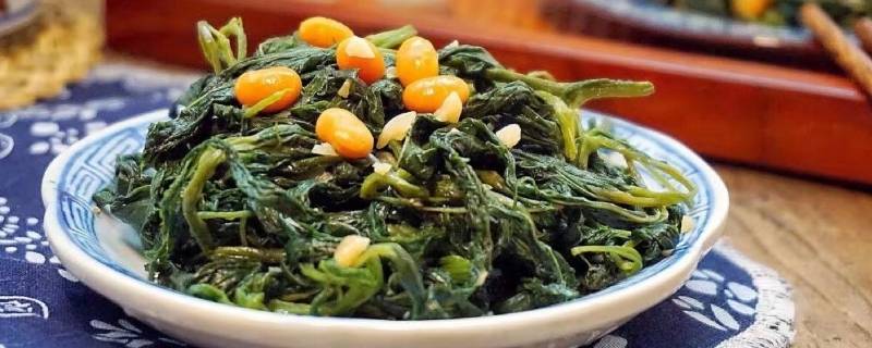 8、炒两分钟后把麻叶推到四周,加入油,蒜末。