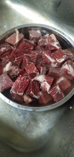 2、先将牛上脑用凉水泡1个小时去除血水,再用清水洗干净。