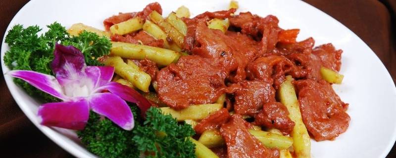 8、热油放辣椒、蒜爆香后放入牛脸肉和辣椒,炒至辣椒断生,加生抽即可。