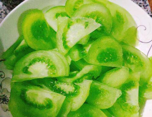 青西红柿2个、葱姜蒜、辣椒、盐、醋、酱油、料酒、辣椒。