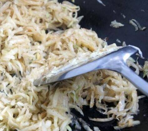 5.炒锅加入适量的油,爆香葱姜和五香粉,加入芥菜丝翻炒。