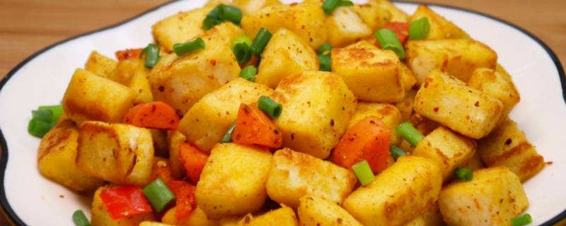 4、锅中倒油,油热倒入拌好的馍馍翻炒,翻炒一分钟倒入葱花,加入少许盐,继续小火翻炒至金黄即可。