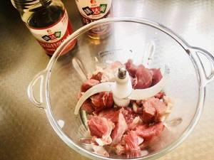 1、准备材料:牛肉650克、大葱1根、生姜1块、料酒2勺、生抽1勺、原汁酱油2勺、十三香适量、淀粉适量、鸡蛋1个。