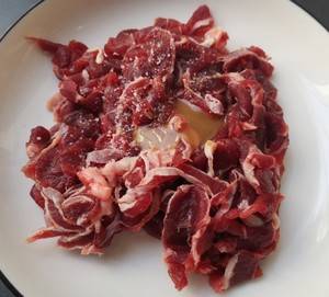 1、把牛肉切成薄片,加入生抽,小鲜侣、盐充分抓匀。