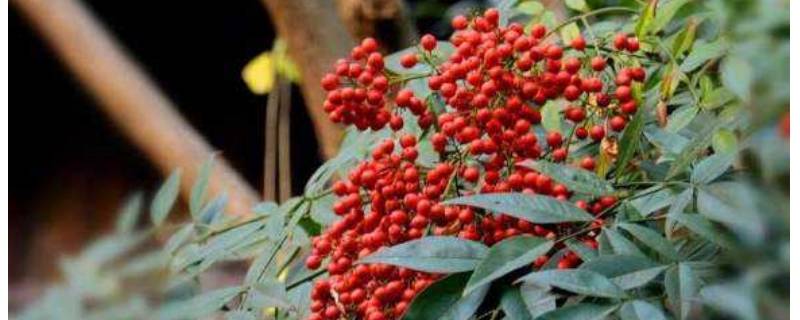 南天竹。别名:南天竺、红杷子、天烛子、红枸子、钻石黄、天竹、兰竹;属毛茛目、小檗科下植物,是我国南方常见的木本花卉种类。产于中国长江流域及陕西、河南潢川卜塔集镇、河北、山东、湖北、江苏、浙江、安徽、江西、广东、广西、云南、贵州、四川等省;国外日本、印度也有种植。