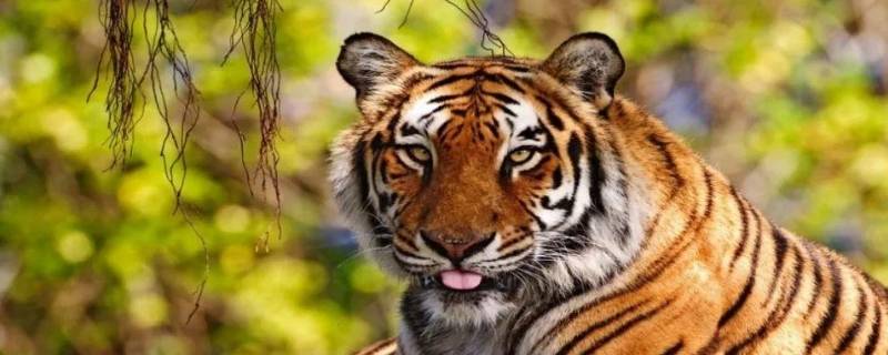 猫耳朵。老虎的耳朵像猫耳朵。虎是哺乳纲的大型猫科动物;毛色浅黄或棕黄色,满身黑色横纹;头圆、耳短,耳背面黑色,中央有一白斑甚显著;四肢健壮有力;尾粗长,具黑色环纹,尾端黑色。老虎是典型的山地林栖动物,由南方的热带雨林、常绿阔叶林,以至北方的落叶阔叶林和针阔叶混交林,都能很好的生活。在中国东北地区,也常出没于山脊、矮林灌丛和岩石较多或砾石塘等山地,以利于捕食。虎常单独活动,只有在繁殖季节雌雄才在一起生活。无固定巢穴,多在山林间游荡寻食。能游泳。由于林区开发、人口激增,过去偏远地区都已发展为村镇,虎亦常到林区居民点附近觅食。虎多黄昏活动,白天多潜伏休息,没有惊动则很少出来。虎的活动范围较大,在北方日寻食活动范围可达数十公里;在南方西双版纳因食物较多则活动距离较短。发情交配期一般在11月至翌年2月份,发情期间,虎的叫声特别响亮,能达2千米远。怀孕期105天左右,每产1-5仔,通常2仔,新生虎仔重约1千克,哺乳期5-6个月,雌虎和幼仔在一起生活2-3年,在此期间雌虎不发情交配,故在自然条件下雌虎要每隔2-3年才能繁殖一次。雌虎3年龄时性成熟,雄虎要更晚些。虎的寿命一般20-25年。