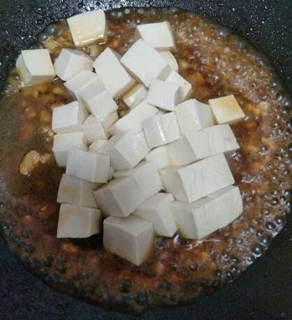 4、放入豆腐。继续煮,给点盐