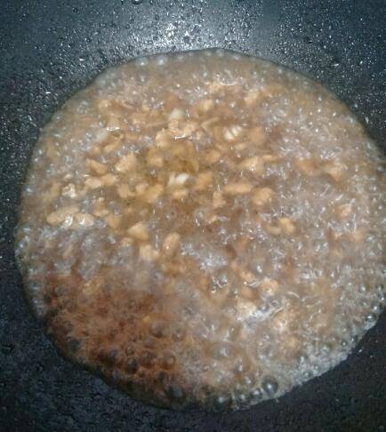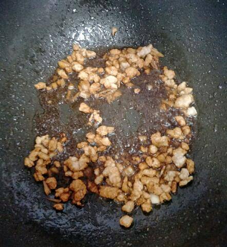 2、油热放入里脊肉,炒一会,给小半勺老抽,翻炒上色。