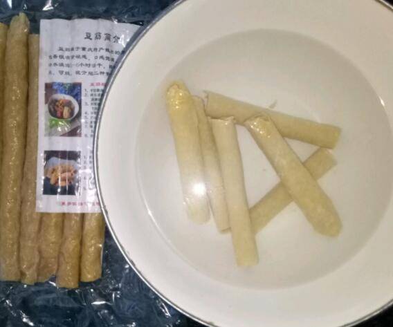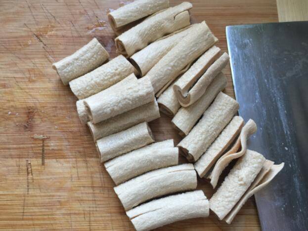 4、豆棒泡5个小时左右,泡软后切段备用。
