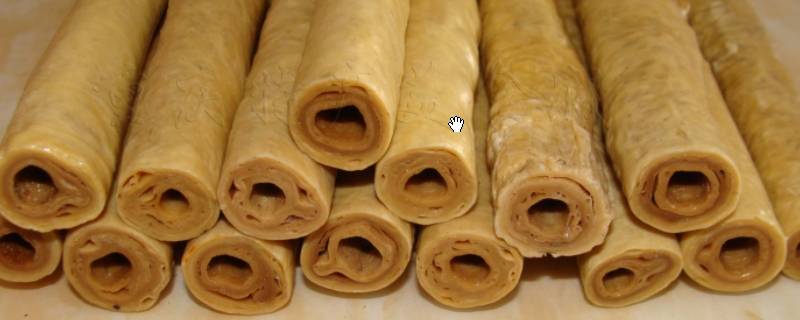 1、准备食材:冰糖1汤匙、生抽2汤匙、老抽1汤匙、料酒1汤匙、植物油适量、豆棒500克、牛蹄筋400克、葱花、大料3颗、桂皮、香叶。牛蹄筋洗净切段。