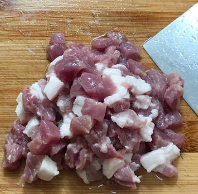 2、把五花肉冲洗干净,切成小块。