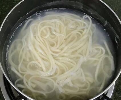 4、另起锅清水煮挂面6分钟。