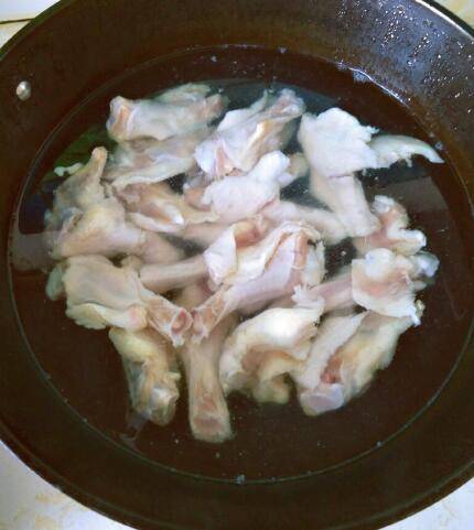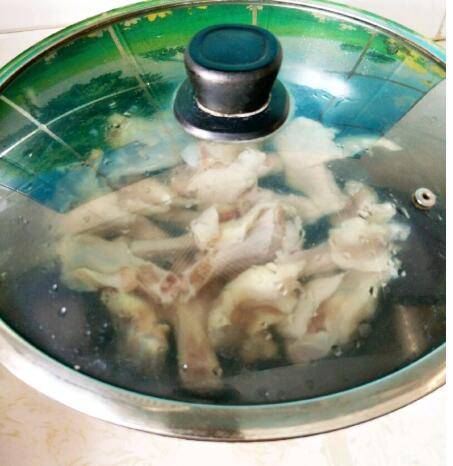 3、水开后,等把血沫煮出来,然后把鸭翅根夹出来备用,锅里水倒掉。