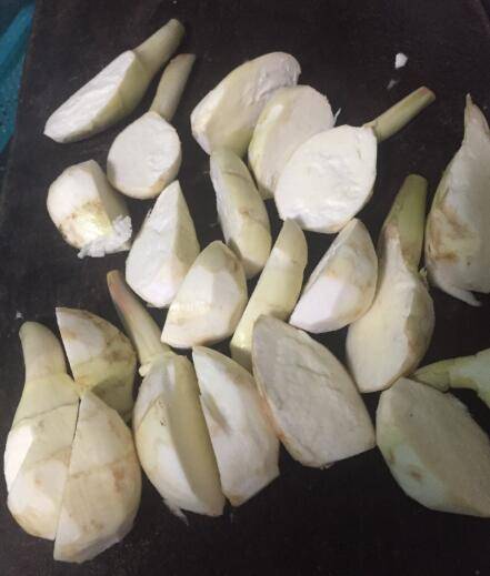 1、准备食材:茨菇10个、鸭翅根8根、油、姜片3片、葱花、八角、茴香、料酒、生抽、老抽、冰糖。鸭翅根洗净一切两段