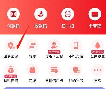 2、登入云闪付后,点击城乡医保。