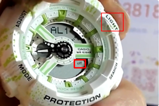 4、按“light”钮,屏幕出现on或者off,选择off关闭即可。