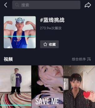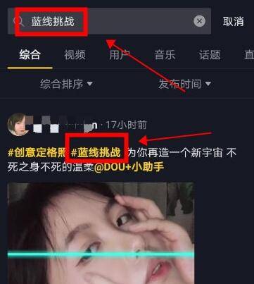 1、首先打开抖音app,然后在搜索框中输入蓝线挑战。