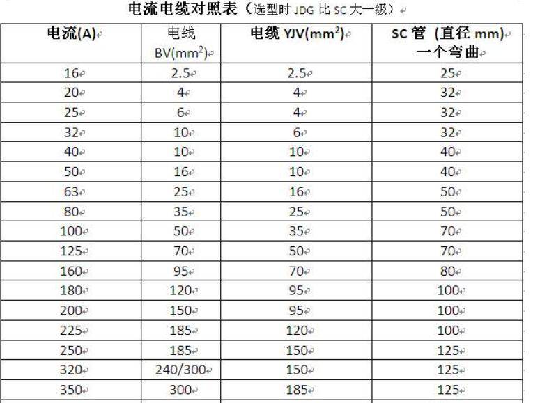 电线选择标准: