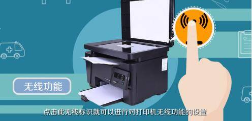 在打印机操作面板会有下面红框内的标识,点击后可进行对打印机无线功能的设置。