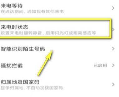 找到并进入“来电时状态”。滑动手机界面。