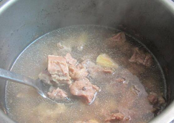 牛腩清洗两遍过开水后再清洗干净,放进电压锅里炖烂。