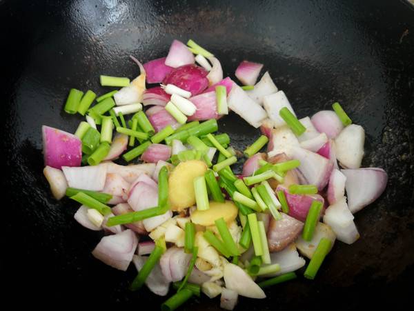 6、底油放入洋葱。