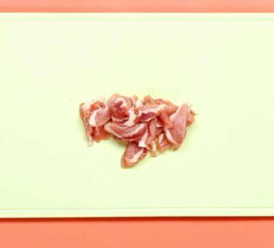 姜切丝,蒜切片,平菇撕条,猪瘦肉切片。