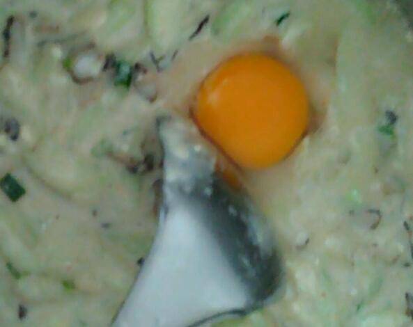 4、加入适量的水,放鸡蛋,再次搅拌。
