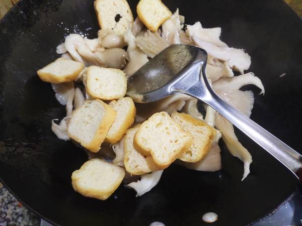7、然后下入油豆腐,翻炒均匀。