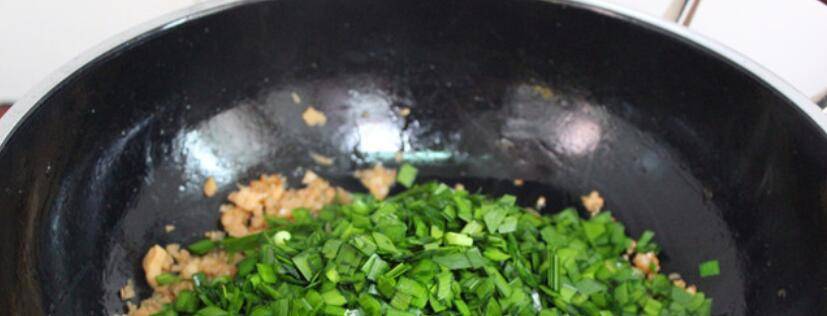 2、韭菜洗净,切碎,别切太长;碎些入味也容易熟。