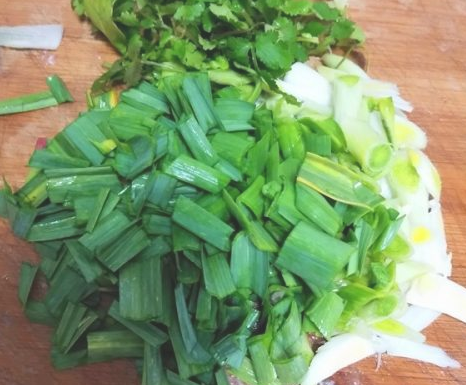 转大火收干汤汁,再加入青蒜大火翻炒,最后调入少许的盐和鸡精翻炒均匀,出锅装盘。