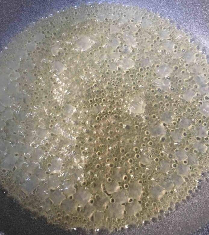 2、先开大火将锅里的液体煮开,但是不用搅拌。