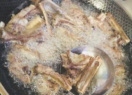 3、把羊排炸到金黄色捞出;