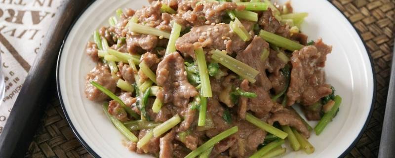 用料:香芹400克、牛肉丝200克、油25毫升、盐3克。