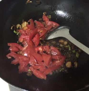 加入西红柿翻炒至西红柿出沙,入其它所有蔬菜翻炒。