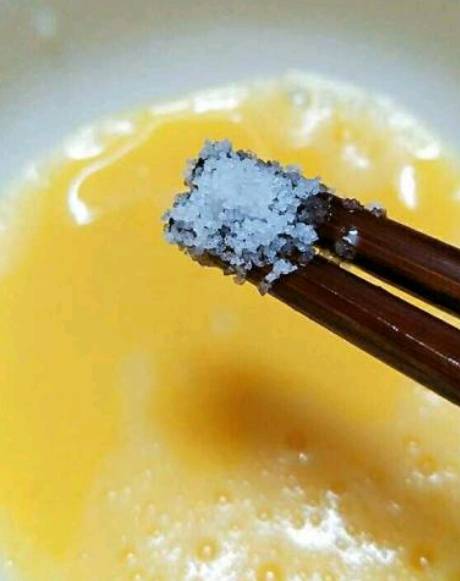 3、把鸡蛋打在碗里,用筷子搅拌均匀,加入适量的清水和盐,再搅拌均匀。