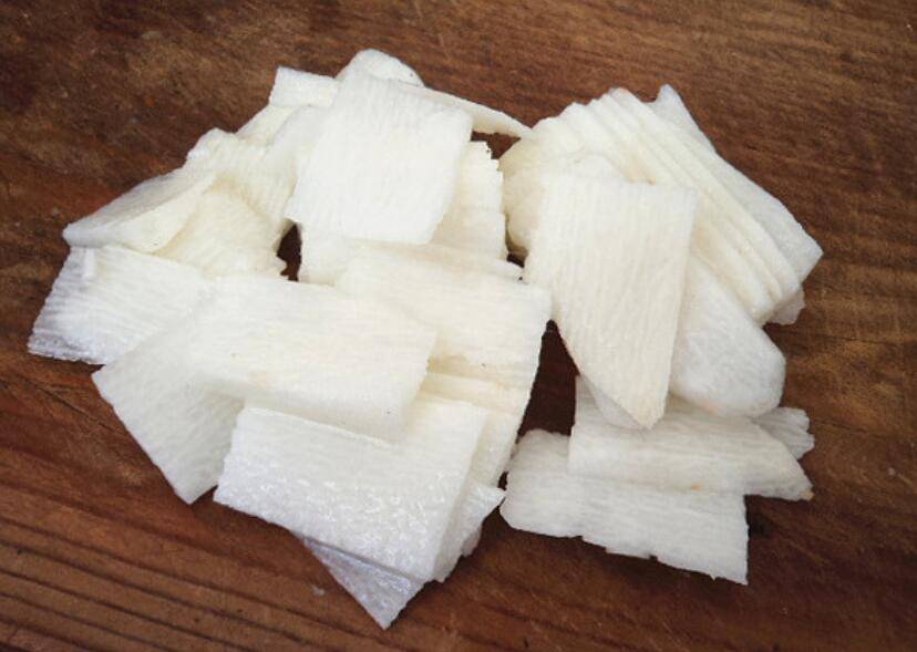 2、山药去皮,洗干净切成片。