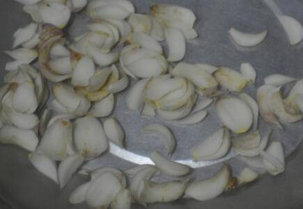 百合一瓣瓣剥下来,清洗干净,百合表面的泥土比较多,清洗的时候稍微有点费时间,必须要一瓣瓣抹干净。