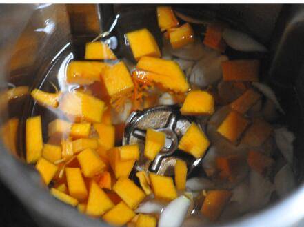 将处理好的百合片和南瓜粒都放入豆浆机中。
