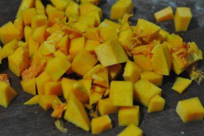 南瓜去皮去瓤,清洗干净后切成颗粒状。