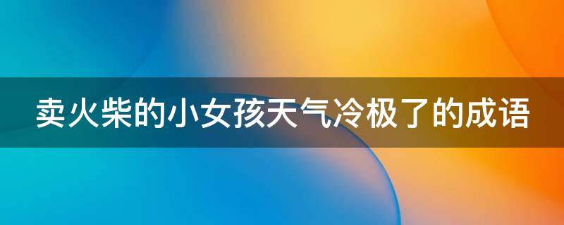 最佳答案卖火柴的小女孩天气冷极了的成语有:饥寒交迫、天寒地冻、雪窑冰天、风雨交加、雪虐风饕等。《卖火柴的小女孩》是丹麦童话故事作家安徒生的一篇童话故事,发表于1846年。主要讲了一个卖火柴的小女孩在富人合家欢乐、举杯共庆的大年夜冻死在街头的故事。小女孩死了,嘴角却带着微笑,通过擦燃火柴的...